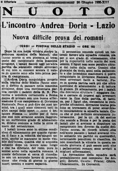 Giovedì 20 giugno 1935 - Roma - Campionato Nazionale Pallanuoto